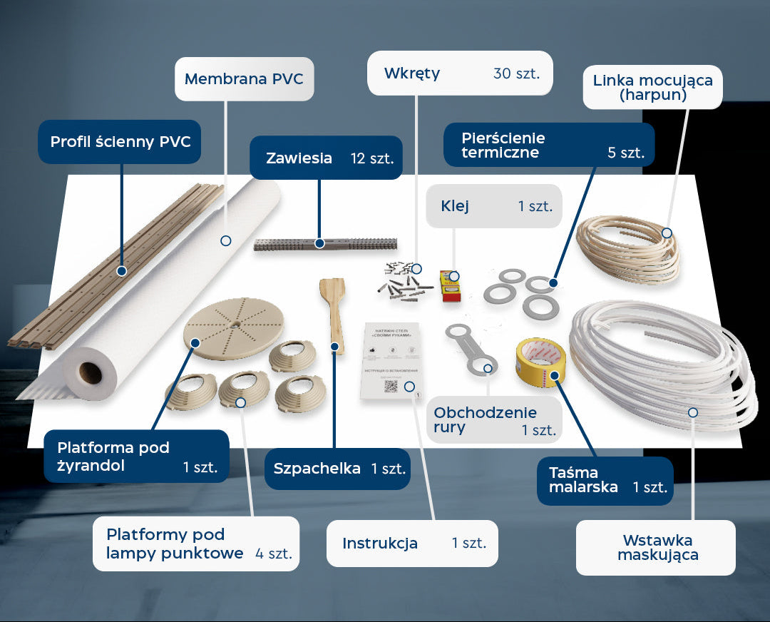 Nie, doświadczenie nie jest potrzebne. Wszystkie zestawy są opracowane tak, aby każdy mógł zamontować sufit napinany samodzielnie — niezależnie od posiadanych umiejętności.