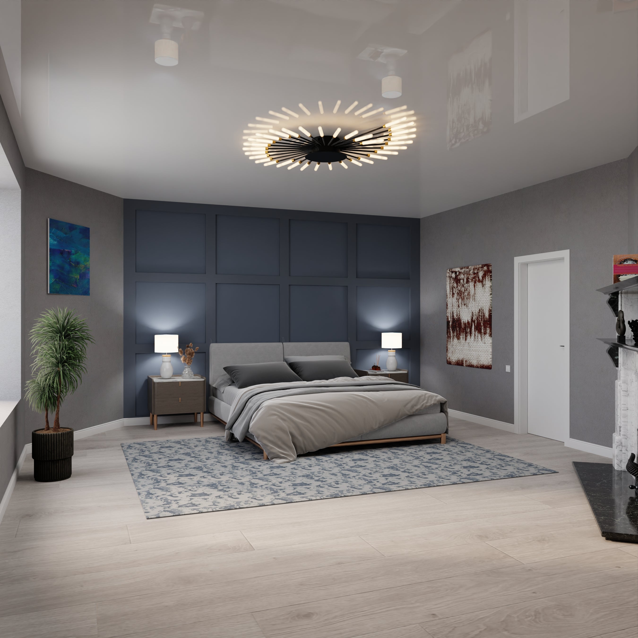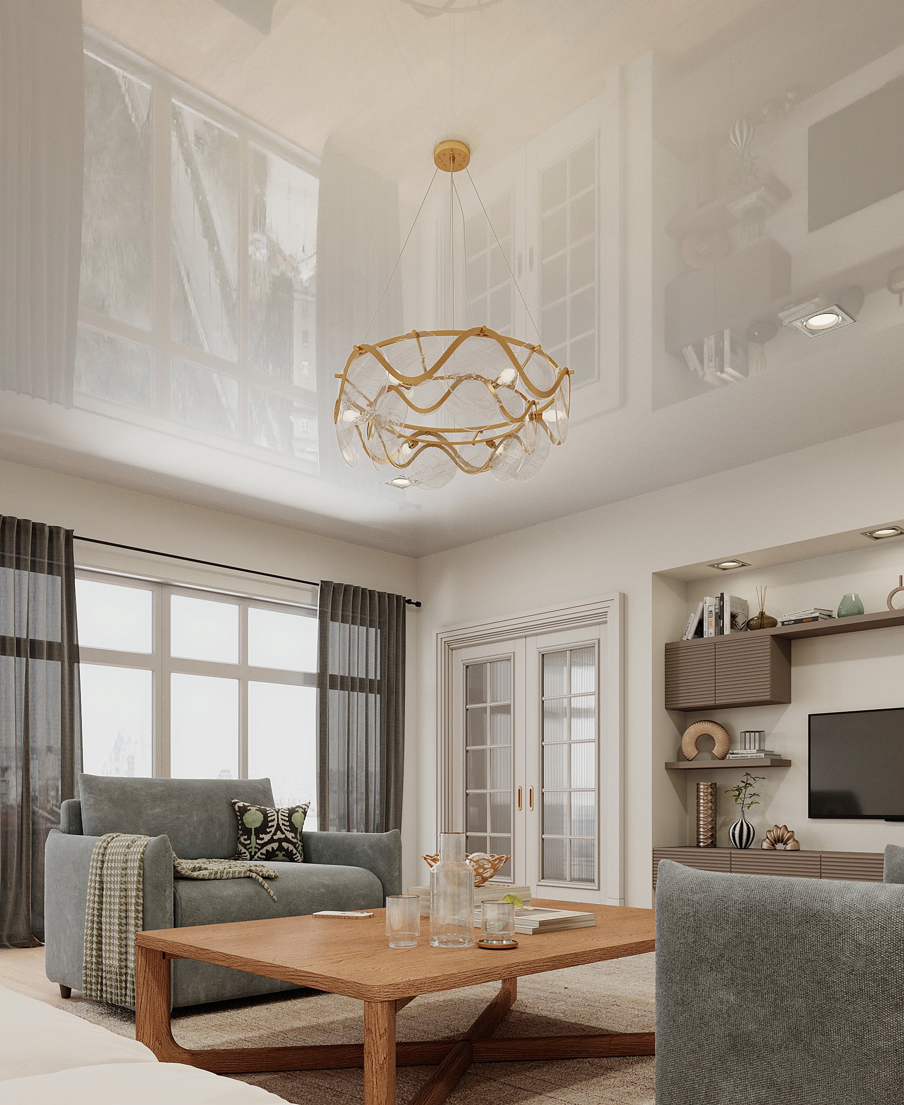 Lustrzana powierzchnia optycznie powiększa pomieszczenie, dodaje światła i głębi.